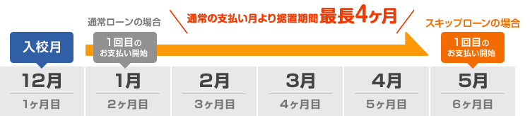 「オリコ」・「エポスカード」2社のローンをご用意しております。学生スキップローンはお支払い開始が入校日から最長6ヶ月後よりスタート!